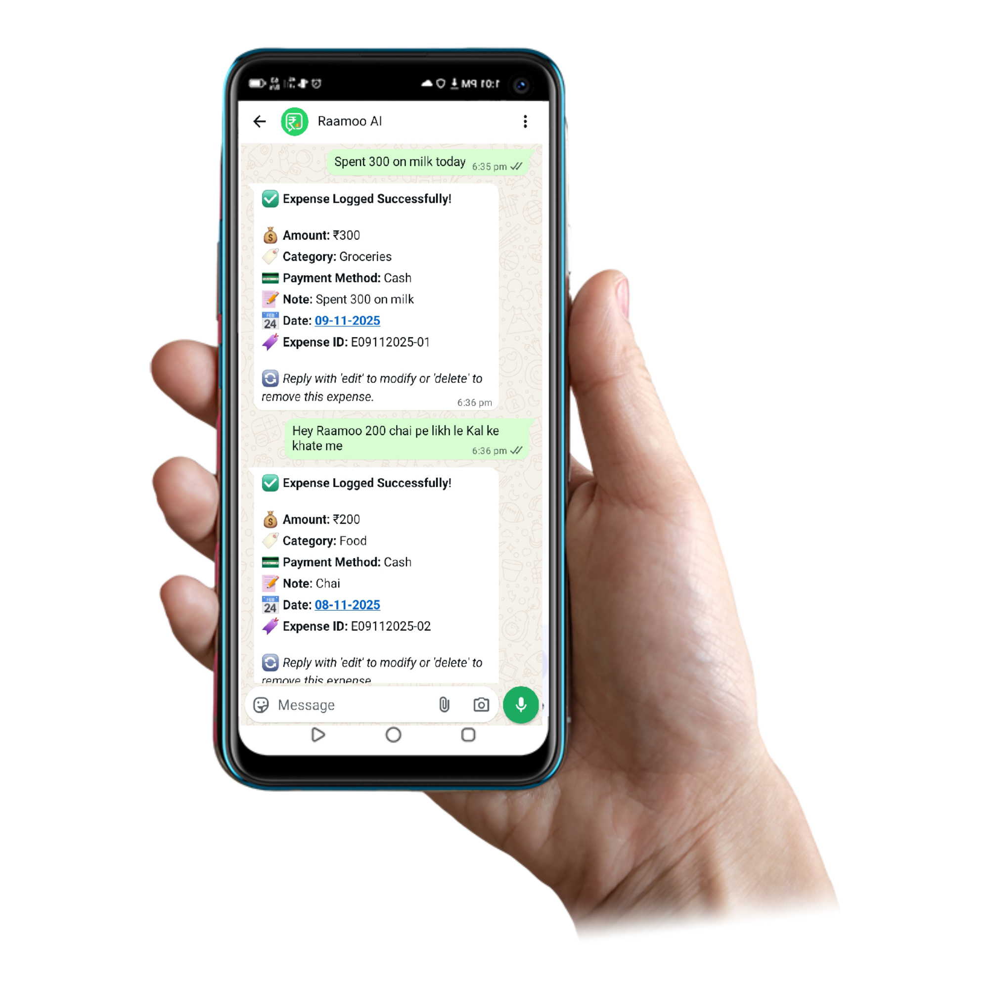 Life’s busy — Raamoo keeps it sorted for you. From logging expenses to reminding birthdays, it’s your dependable WhatsApp companion. Always ready to listen, organize, and assist.